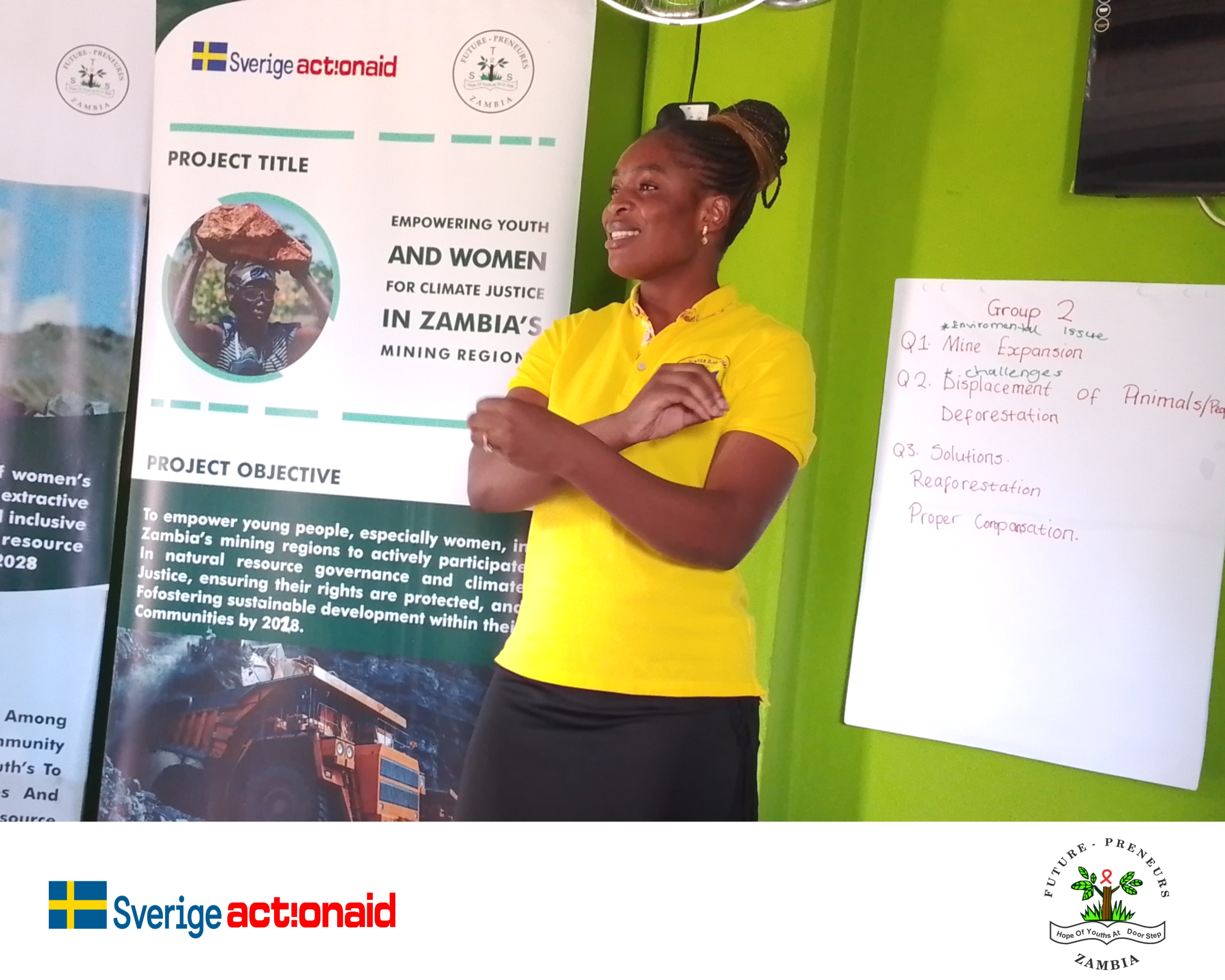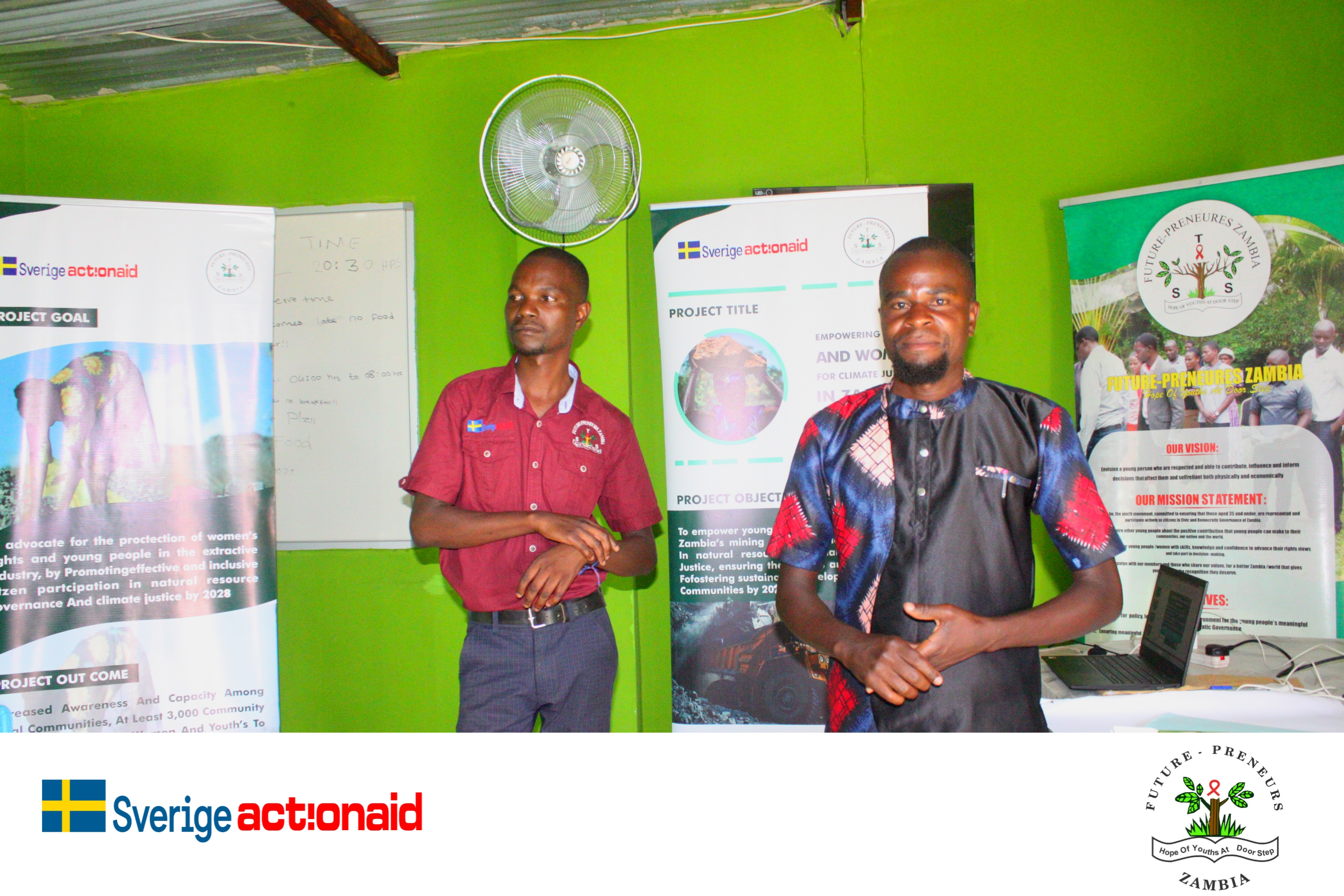 After the successful implementation of a training workshop on empowering women and youths with knowledge and skills in Natural Resource Governance and Climate Justice in Kasempa and Kalumbila from 22nd to 27th April 2025. The project has been funded by ActionAid Zambia with support from Swedish International Cooperation Agency (SIDA).